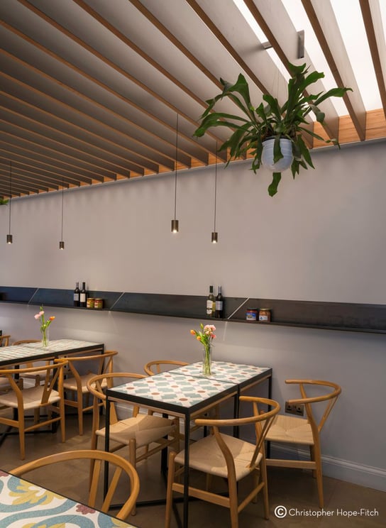 La prima sala è caratterizzata dall'inserimento di un pergolato che, come il graticcio di un teatro, consente diversi e facili allestimenti verticali. Gli elementi del pergolato contengono, verso il soffitto, una linea led dimmerabile: il vibrato delle doghe, modulando il riflesso del soffitto, genera una luminosità di rimando gradevole ed inattesa, un "inganno" per ricreare la qualità della luce di un "cielo in una stanza".