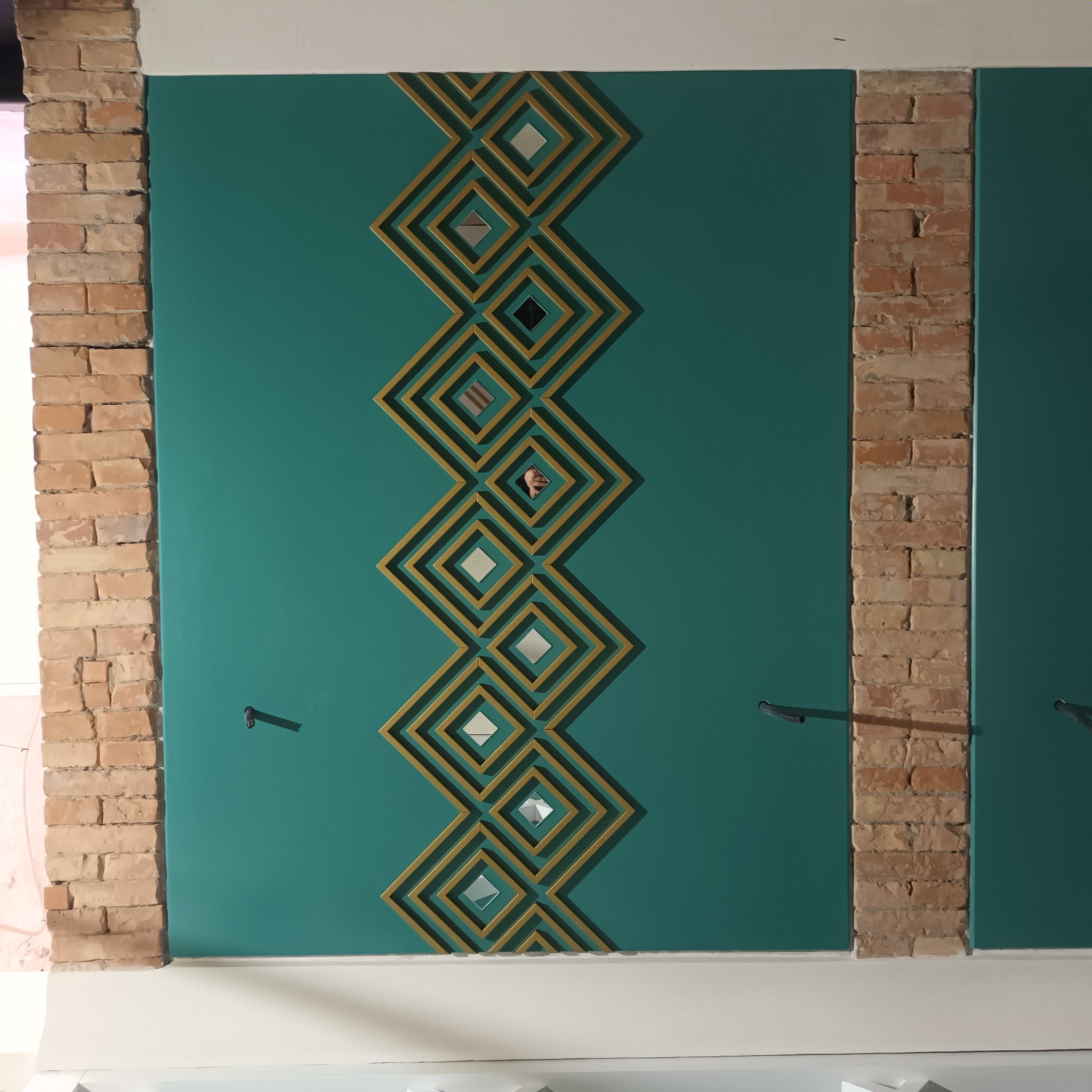Verde , giallo e bianco del concept diventano forti e preziosi rendendo l'ambiente piacevole, elegante e caldo.