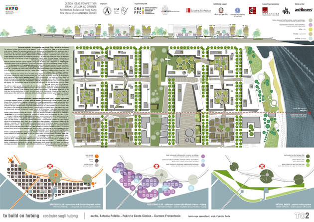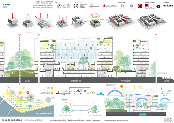 The settlement solution offers a model “full of relations”; a train of Complex Blocks Tulou on the land covered by small volumes Hutong. The separation between the lower driveway slab and the pedestrian one, at the
