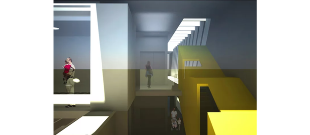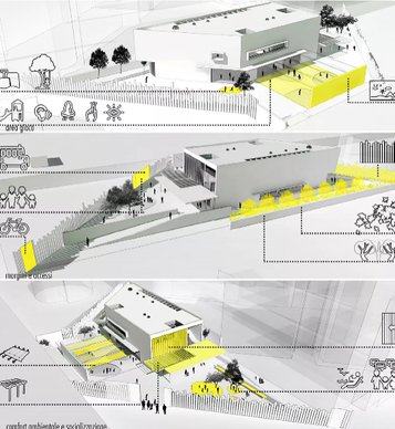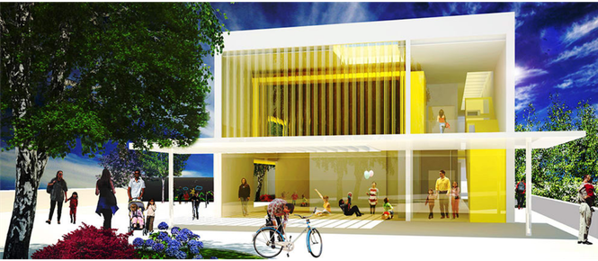 Il progetto per il Padiglione di Infanzia avrà come obiettivo la creazione di una ludoteca dedicata alle attività di gioco,conoscenza e apprendimento di bambini con disabilità. Il lotto d’intervento intercluso su tre lati,orienta il progetto verso l’unico orizzonte possibile,la Biblioteca degli Alberi,definendo l’identità e la riconoscibilità del Padiglione che con la sua architettura e conformazione geometrica semplice si adegua agli utenti per dimensioni, forma, materia e colori,permettendo loro di avere una chiara visione e lettura dello spazio in cui si trovano,per poterlo attivamente utilizzare e padroneggiare.
