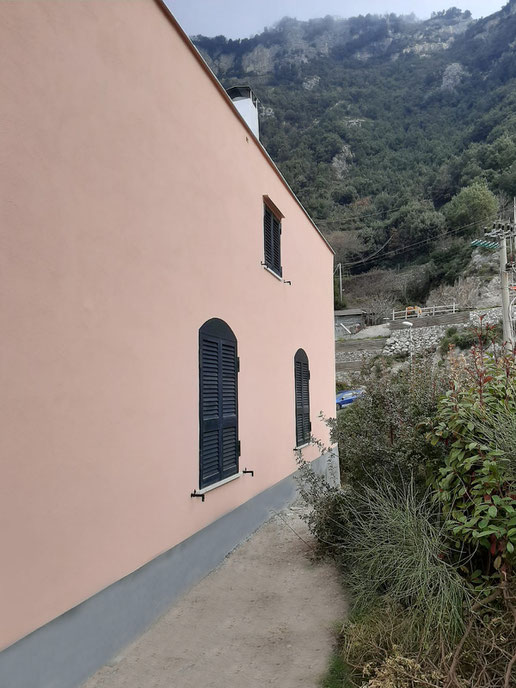 - Tinteggiatura facciate con colori a base di calce analoghi a quelli preesistenti;