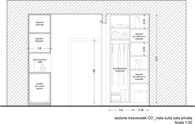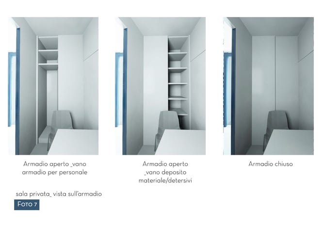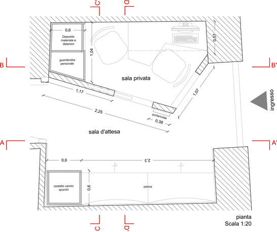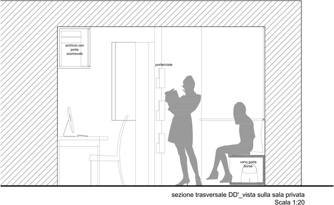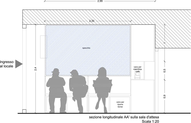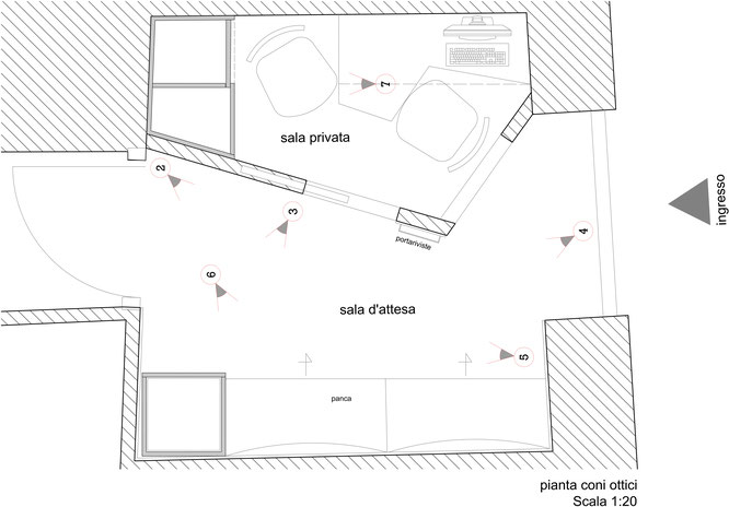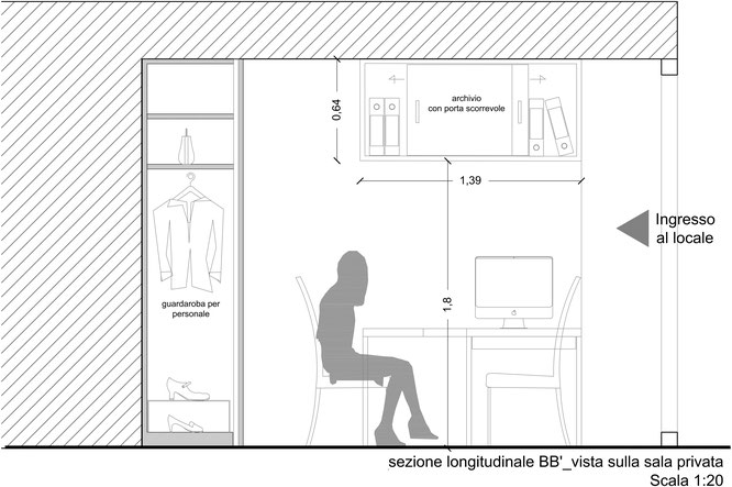 L'ambiente viene suddiviso perciò in due parti : sala privata e sala d'attesa .