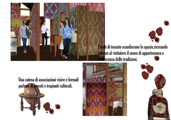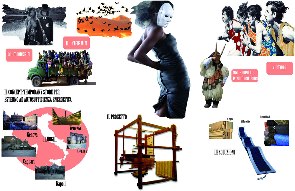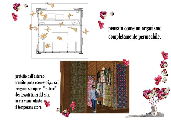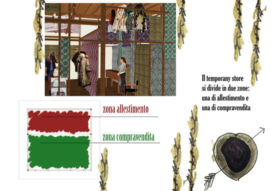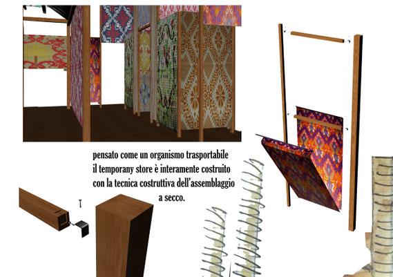L’obiettivo prefissato è stato quello di creare un temporany store per esterno,che comunicasse la sensazione del viaggio. Il viaggio nel senso di ripresa della tradizione,memoria.Un viaggio all’interno di culture diverse che possono interagire tra di loro attraverso l’abbattimento del limite geografico e il suo superamento.